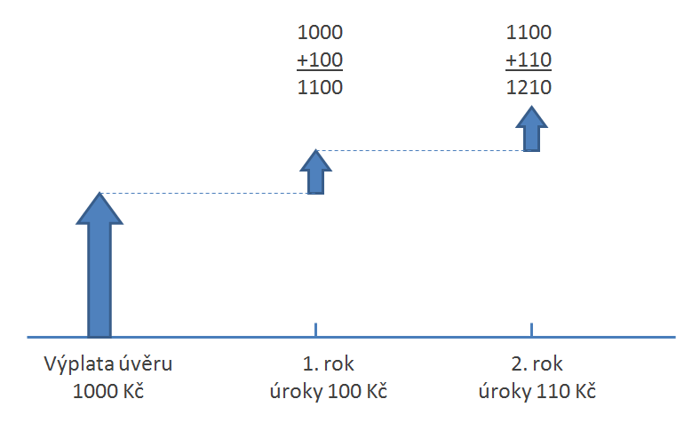 Pokud se na obě možnosti z předchozího případu podíváme zdravým selským rozumem, asi se nám výsledek RPSN nebude tak úplně líbit. A právem. Představme si, že na konci prvního roku budeme mít k dispozici potřebných 1100 Kč potřebných ke splacení půjčky. Budeme váhat, kterou variantu zvolit, a protože podle RPSN jsou obě varianty stejné, zvolíme variantu dvouletou. Co se stane?Po roce budeme dlužit 1100 Kč a v peněžence budeme mít také 1100 Kč. Úvěr bychom tedy mohli splatit, ale nesplatíme, protože se spoléháme na RPSN. Počkáme ještě jeden rok a teprve potom půjčku splatíme. Podle RPSN by to přeci mělo vyjít nastejno. Ale ouha! Na konci druhého roku po nás bude věřitel chtít 1210 Kč a my budeme mít stále jenom 1100 Kč. Kde je chyba? No jistě, přeci časová hodnota peněz! Hodnota peněz sice s časem roste, ale neroste sama od sebe. Musíme peníze uložit na výhodný úrok, aby nám vydělávaly.