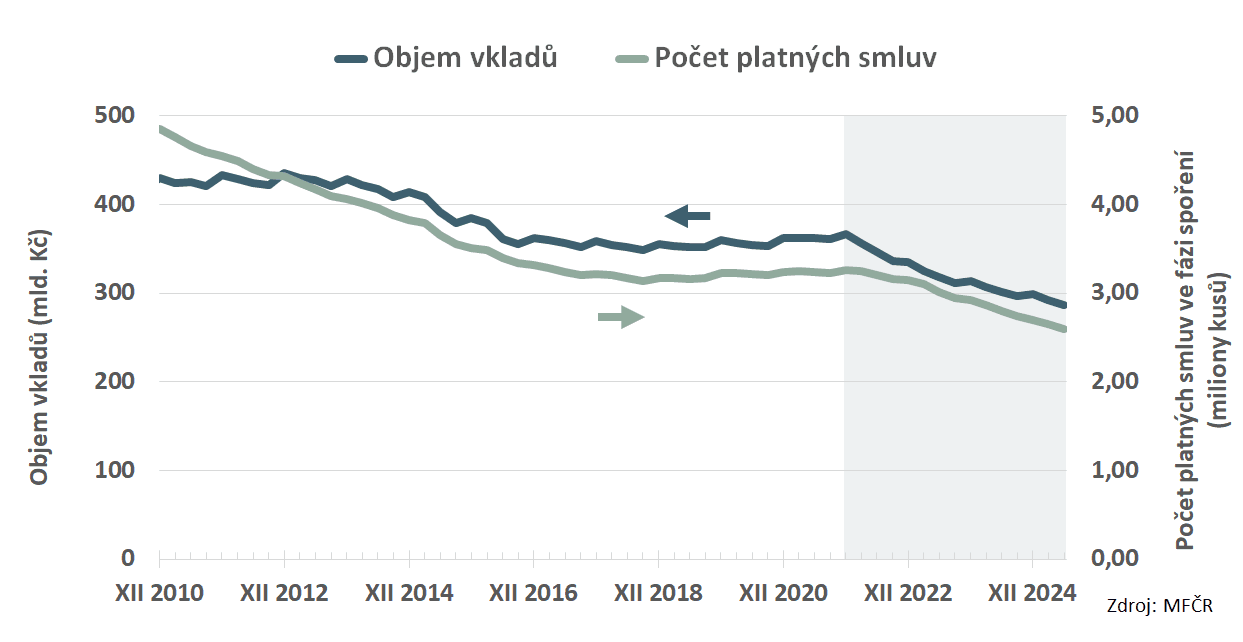 Růst průměrné naspořené částky je způsoben stárnutím kolektivu